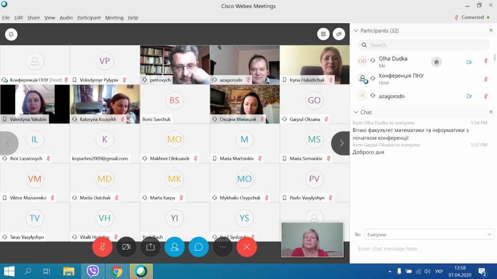 Пленарні засідання були організовані за допомогою системи Webex Cisco. Викладачі кафедри взяли участь у пленарних засіданнях університету та факультету, які відбувалися протягом 6 та 7 квітня.