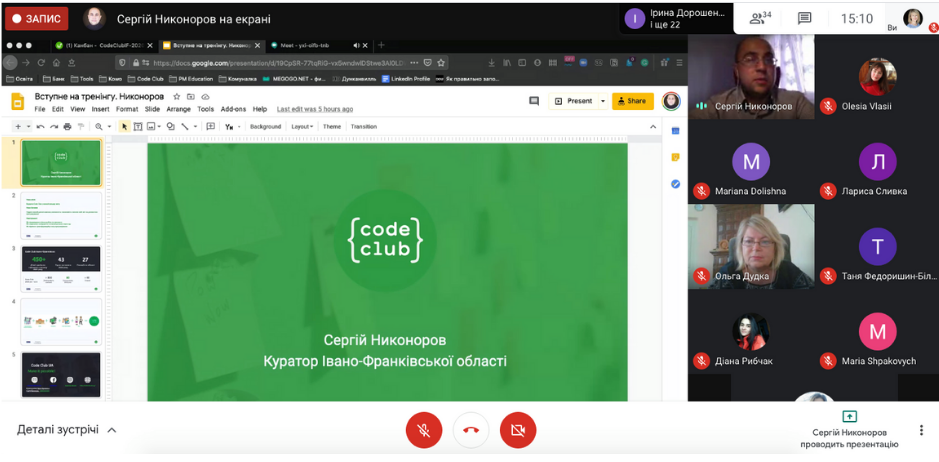 8-11 вересня, учасниці команди Code Club Івано-Франківськ Олеся Власій та Ольга Дудка провели для всіх охочих онлайн тренінг “Code Club: можливості для кожного”. (Організатори: Прикарпатський національний університет імені Василя Стефаника і Code Club Івано-Франківськ. Тренери: Олеся Власій та Ольга Дудка, доценти кафедри математики та інформатики і методики навчання Прикарпатського національного університету імені Василя Стефаника)