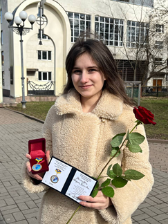 Із початку російсько-української війни я активно включилася у волонтерську діяльність для допомоги захисникам України та внутрішньо-переміщеним особам. Влітку 2022р. почала проводити безкоштовні заняття з програмування та математики для школярів міста та України, зокрема ВПО, організовувати STEM-школи, за що 20 лютого 2023р. отримала відзнаку імені Героя Небесної сотні Романа Гурика. Цей день запам’ятається на все життя… Ми під звуки тривоги в укритті отримуємо нагороди від батьків Героя Небесної Сотні… Роман помер у 2014 за те, що ми відстоюємо і сьогодні. Відзнака – це розуміння, що я рухаюсь у правильному напрямку.