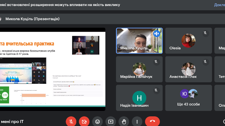 Логічним продовженням жовтневих цифрових четвергів став молодіжний мітап “Розкажи мені про ІТ”, метою якого стало спілкування студентської молоді гуманітарних та технічних спеціальностей з різних куточків України для виявлення можливостей використання цифрових технологій у різних сферах діяльності людини. Мітап продовжився і на цифрову п’ятницю та відбувся 26-27 жовтня 2023 року. Студенти та випускники спеціальностей “Середня освіта (Інформатика)” та “Середня освіта (Математика)” розповідали про захоплення та роботу у сфері програмування, дизайну, веб-технологій, цифрової освіти, а також про ШІ (як без нього?). Спікерами стали Учасники мітапу обговорили перспективи модернізації освітніх підходів для наближення потреб сучасної людини до потреб ХХІ століття. Неформальне спілкування, нестандартний підхід, вільний простір для самореалізації та самовдосконалення, налаштування партнерських стосунків – це все під силу молоді, яка хоче навчати та навчатися. Організатори привернули увагу до важливості проблеми формування цифрової грамотності, розширення цифрових компетентностей, стратегічну важливість спілкування студентів гуманітарних та технічних спеціальностей, а також пропагування менторства як тренду сучасної освіти.