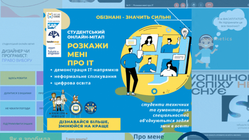 Два дні поспіль, після робочого дня своїми історіями ділилися студенти, випускники, викладачі, які, крізь розчарування і впертість, крізь перемоги і помилки, шукали себе і готові поділитися з іншими не тільки промовистими історіями, а й власними порадами: як добиватися успіху чи просто займатися улюбленою справою, як вчитися розпізнавати обман і берегти крізь роки дружбу та повагу до наставників. Онлайн-мітап “Розкажи мені про ІТ” об’єднав біля 100 учасників, які долучилися, щоб послухати такі історії. Історії про ОСВІТУ і ІТ, історії шляхів від освітньої діяльності в ІТ та втечі від ІТ в освіту (а так буває!), історії про різноманіття світу ІТ і пошуки власного шляху. 14 спікерів – студенти 3-4 курсів, магістранти, випускники, знайшли час, щоб розвіяти міфи про легкий шлях в ІТ, а також міфи про складний шлях в ІТ, міфи про вибір професії та важливість навчання, і ще дуже багато інших міфів….