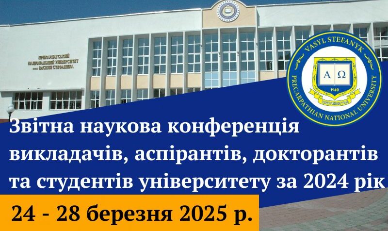Ректорат Прикарпатського національного університету імені Василя Стефаника запрошує вас взяти участь у звітній науковій конференції університету за 2024 рік, яка відбудеться 24-28 березня 2025 року.