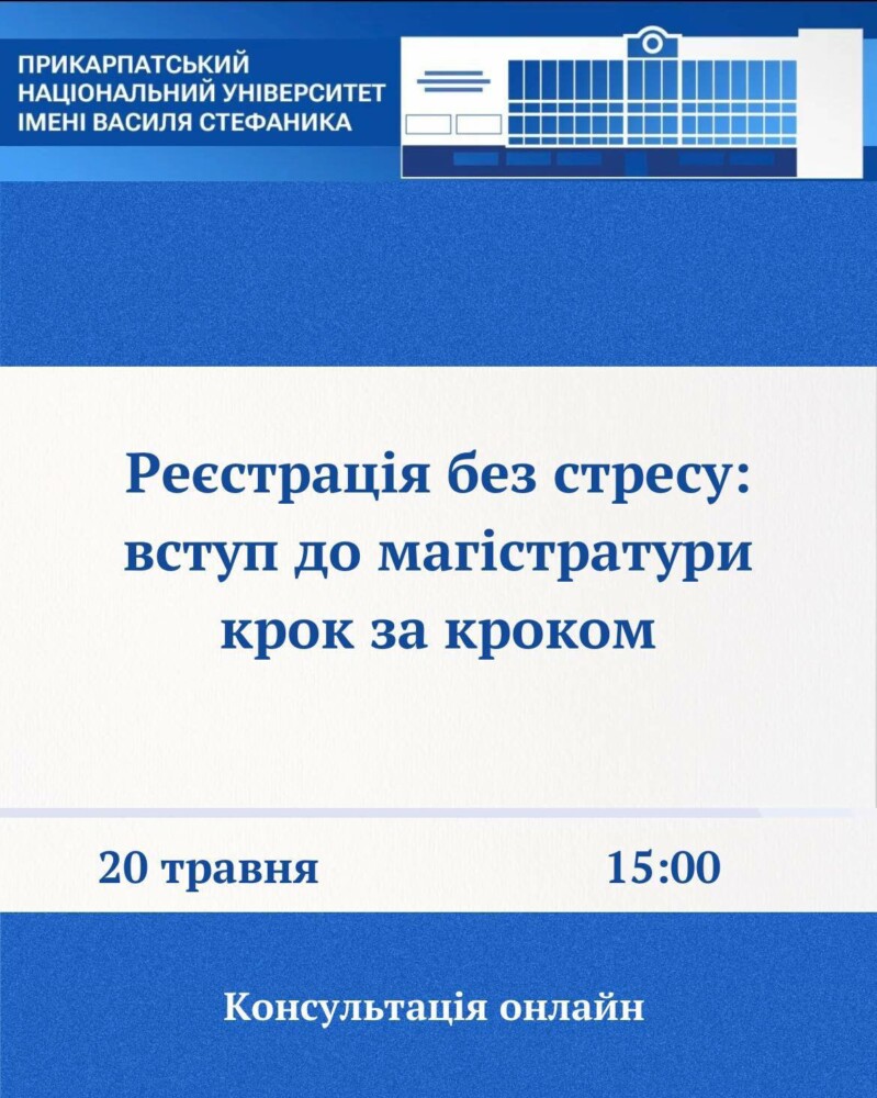 Запрошуємо на консультацію онлайн «Реєстрація без стресу: вступ до магістратури крок за кроком».
