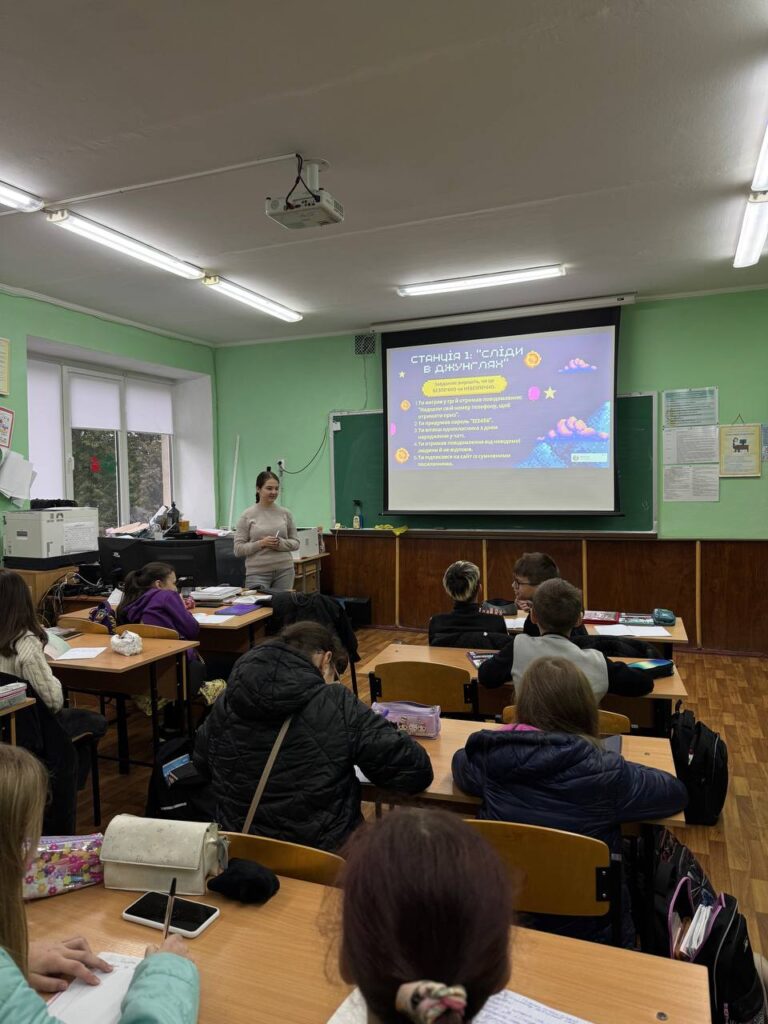 Упродовж тижня у Ліцеї №23 імені Романа Гурика проходили цікаві та пізнавальні заходи з інформатики для учнів 6-Б, 6-В та 6-Г класів. Студентки групи СО(М)-41 — Димкар Марта, Лонюк Олена та Оленюк Вікторія — провели захопливу подорож під назвою “Онлайн-джунглі: правила виживання” . Учні вирушили у світ безпечного та ввічливого Інтернету, де дізналися, як уникати небезпек у мережі, створювати надійні паролі, спілкуватися коректно й з повагою, а також розпізнавати фейки та кіберзагрози. Захід проходив у формі інтерактивної гри: діти виконували цікаві завдання, розв’язували інформаційні головоломки, відповідали на запитання вікторини та обговорювали реальні ситуації з онлайн-життя. Тиждень інформатики подарував учням безліч позитивних емоцій, нові знання та впевненість у власній цифровій безпеці. Інтернет може бути дружнім і безпечним — якщо знати правила онлайн-виживання!